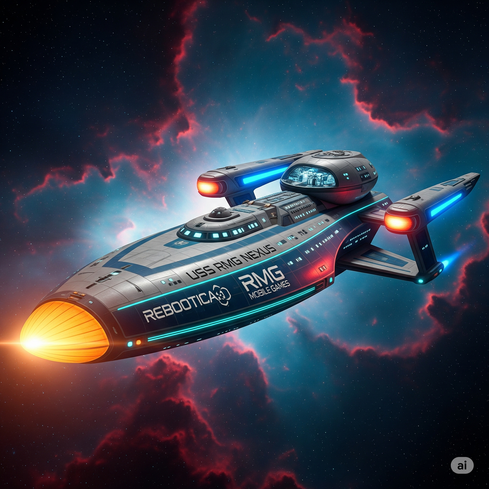 This starship was commissioned under a groundbreaking joint initiative between Starfleet and a private sector corporation, Rebootica Mobile Games. Originating on Old Earth as a hugely successful video game developer, Rebootica Mobile Games strategically leveraged its expertise in complex code, virtual world-building, and procedural generation to become a pioneering force in advanced artificial intelligence and robotics. Its sponsorship of the RMG Nexus allowed for the installation of state-of-the-art systems not typically found on standard Starfleet vessels. As a result, the RMG Nexus operates as the flagship of the Starfleet Advanced Robotics & AI Division.